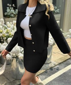 Trendy Cardigan Knit Mini Skirt Sets VS33