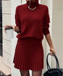 Sky Blue Turtleneck Mini Skirt Sets VS37