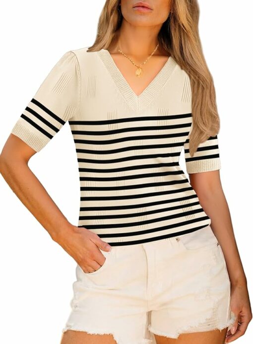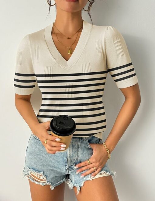 - Made of soft high-quality knitted fabric, are lightweight, breathable, and skin-friendly, comfortable to wear. This short sleeve sweater is must-have in your wardrobe