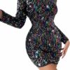 - Sexy sparkling sequins dress, in multicolor pattern, makes this sexy little dress into a bold fashion statement