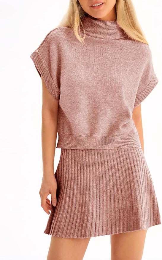 - Trendy Design: 2 Piece Skirt Sets for women, include a turtleneck cap sleeve sweater top and tennis-style pleated mini skirt. The outfit combines style and functionality effortlessly, its minimalist design offer a versatile and flattering fit for you