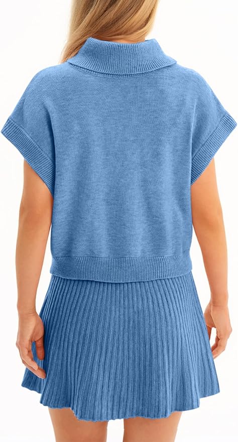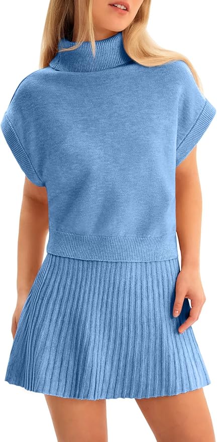 - Trendy Design: 2 Piece Skirt Sets for women, include a turtleneck cap sleeve sweater top and tennis-style pleated mini skirt. The outfit combines style and functionality effortlessly, its minimalist design offer a versatile and flattering fit for you