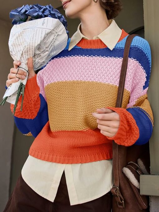 - Premium Soft Fabric: The fashion fall sweater is crafted from a quality knitted fabric, soft and thermal, this striped sweater offers a luxuriously soft feel against the skin while resisting pilling for long-lasting wear