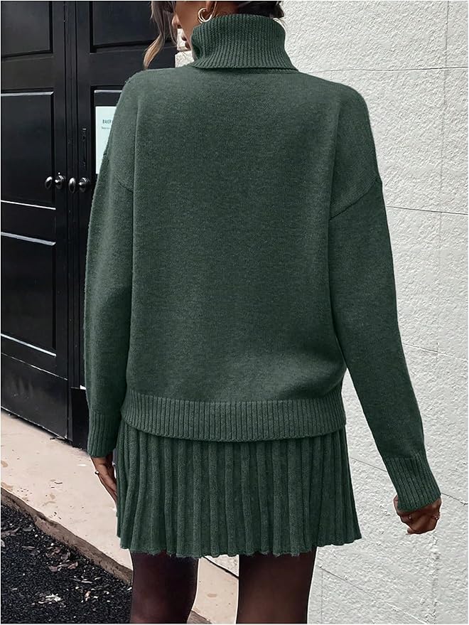 - Feature: stand collar, rib knit, long sleeve sweater, 2 piece set sweater skirts for women